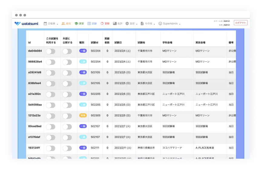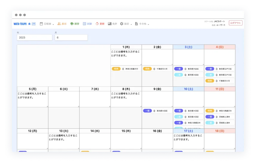 試験機関から発表された試験や更新講習の日程データは、公式発表時に自動で勝手にカレンダーに反映されます。